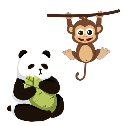 认识猴子、熊猫